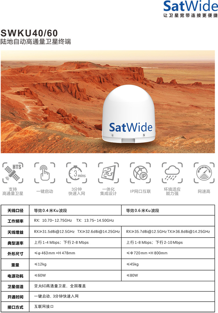 陆地自动高通量卫星终端SWKU40/60